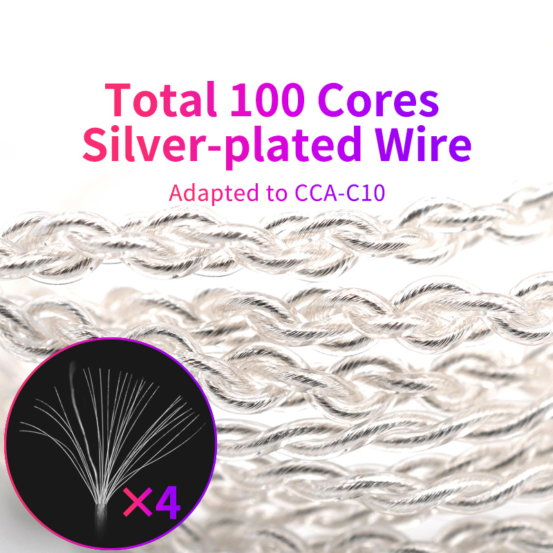 Silver-Plated Upgrade Cable 100 Core 4 Strands Headphone Cable HIFI Noise Reduction Cable